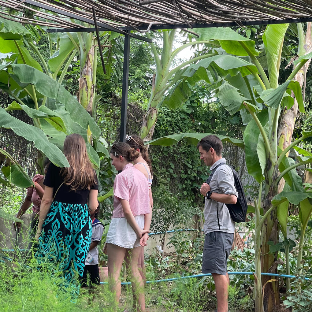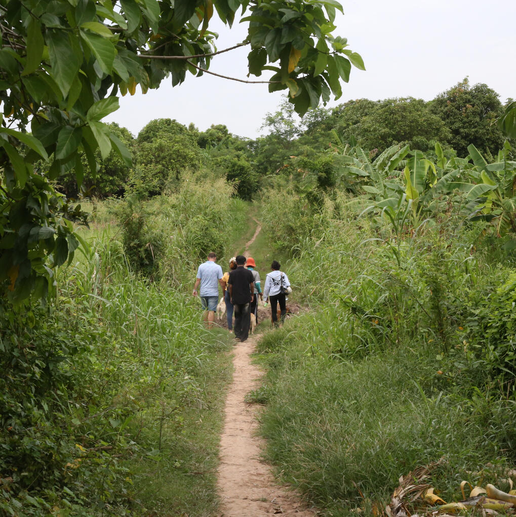 Time to wander! Follow a dirt path through rice and lotus fields, waving to local farmers and smiling kids as you head towards our outdoor kitchen.