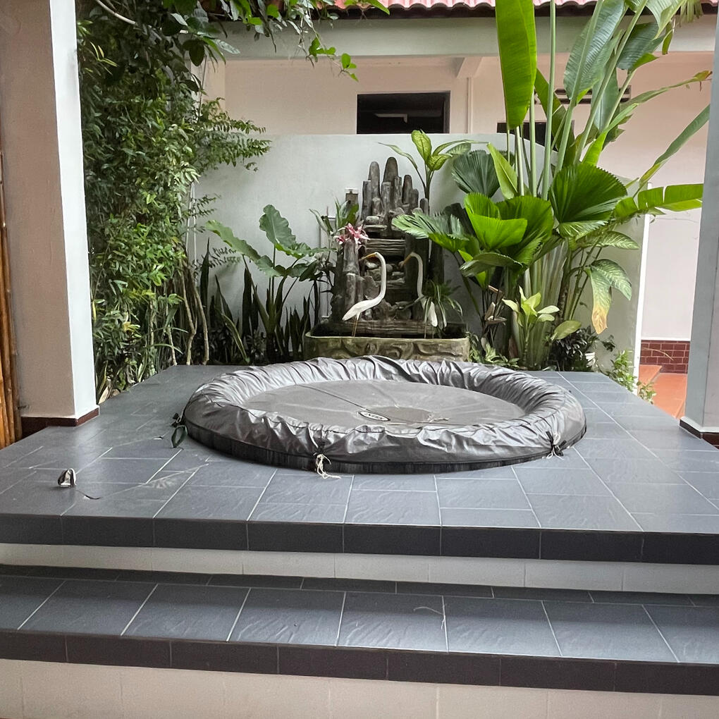 Cool down in the open-air jacuzzi and take in the calm surroundings. It’s the perfect way to recharge before we start cooking.